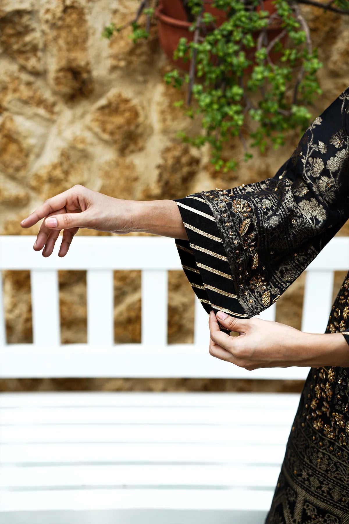 This outfit features fine embroidery and delicate fabrics. Dry clean only to maintain quality. Keep away from direct sunlight and store carefully in a breathable garment bag to ensure long-lasting elegance.
