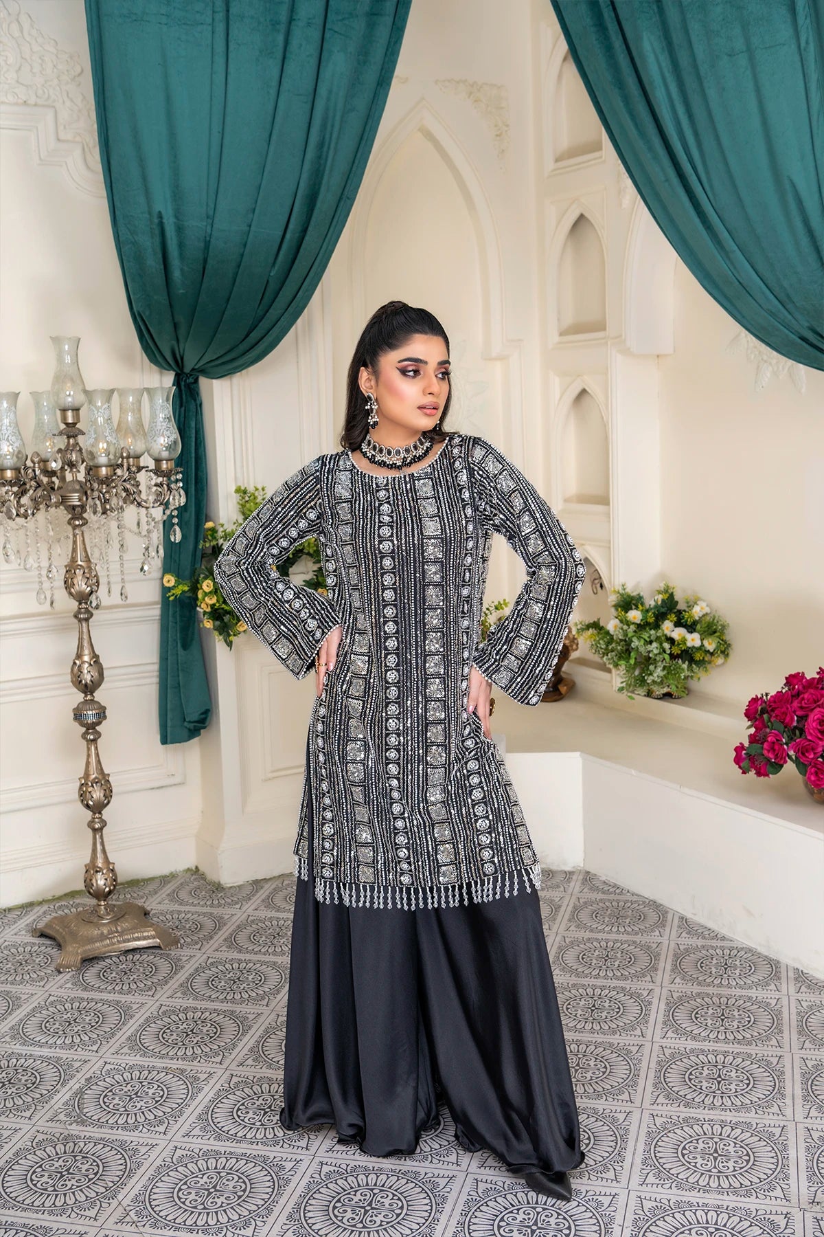 Shirt Fabric: Fine net with intricate cutdana work and pearl hand embellishments for a refined, luxurious look.