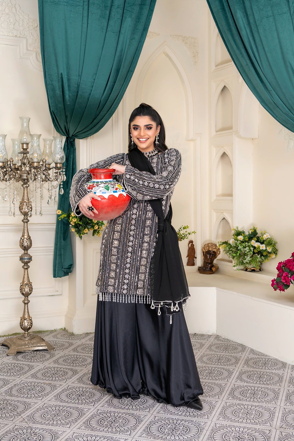 Bottom: Elegant silk sharara for a classic yet contemporary bridal or formal look.